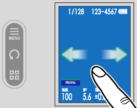 查看照片或动画期间,在 LCD 显示屏上向左或向右滑动,查看上一或下一张照片或上一或下一个动画(a查看及删除照片)。