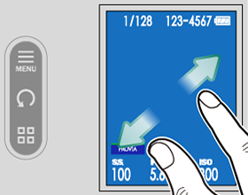 在拍摄显示中在 LCD 显示屏上向上、向下、向左或向右滑动可显示菜单。
