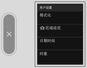 在 D(设置)选项卡中选择 D用户设置 > 日期时间。