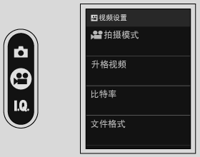 在 LCD 显示屏上向左滑动,然后在副 LCD 显示屏上轻触 B(视频设置)。