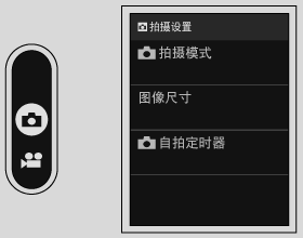 在 LCD 显示屏上向左滑动,然后在副 LCD 显示屏上轻触 A拍摄设置)。