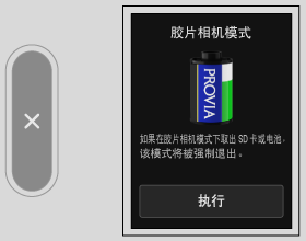 在胶片相机模式期间轻触两下副 LCD 显示屏可退出胶片相机模式。一旦退出,就无法以先前使用的胶卷恢复拍照。