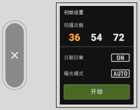 设置一个胶卷的照片数量、日期印章和拍摄模式。
