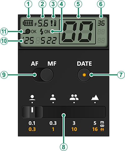 在胶片相机模式下,LCD 显示屏上会显示以下屏幕。
