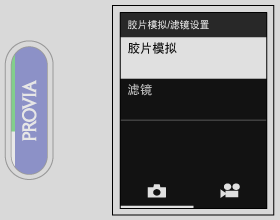 3. 在副 LCD 显示屏上选择所需的胶片模拟或滤镜。