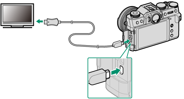 使用第三方 HDMI 线将相机连接至电视机或其他 HDMI 设备。