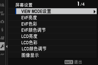 调整眼传感器、EVF(电子取景器)或 LCD 显示屏查看模式的设定(a选择显示模式)。