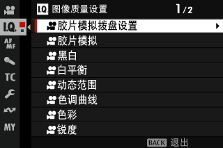选项内容与静态摄影的选项相同,但必须分别调整设置(a胶片模拟拨盘设置(静态摄影))。