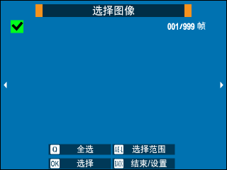 滚动显示图像并向上按下对焦棒(对焦杆)以确认或取消选择。照相簿创建完成后,按下 MENU/OK 退出。