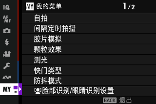 若要显示 “我的菜单”,请在拍摄显示中按下 MENU/OK 并选择 E我的菜单)选项卡。