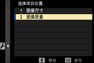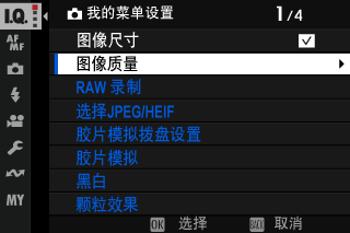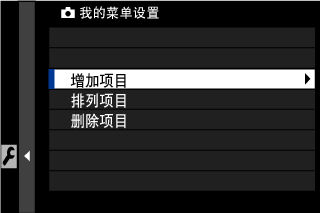 2. 向上或向下按下对焦棒(对焦杆)高亮显示 增加项目,然后按下 MENU/OK。可添加至 “我的菜单” 的选项用蓝色高亮显示。