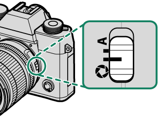 如果镜头不配备光圈环或如果光圈环处于 A 位置,则通过旋转前指令拨盘可以调整光圈。