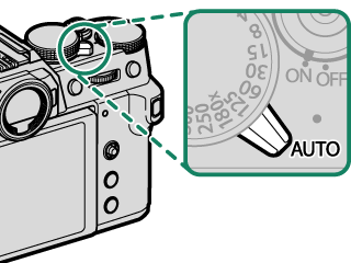 将自动模式选择器拨杆旋转至 AUTO 可查看 Y 模式的拍摄显示。