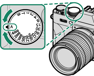 2. 将快门速度拨盘旋转至 A