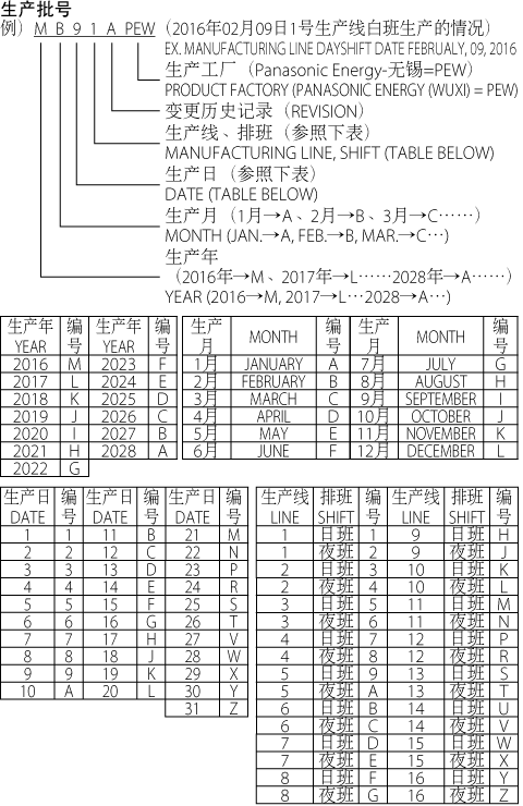 切勿拆卸、改装或加热电池。切勿跌落、敲打或投掷电池,也不要使其受到强烈撞击。切勿使用有漏液、变形、变色或其他异常现象的电池。仅可使用指定的充电器为可充电电池充电,切勿试图为非可充电锂电池或碱性电池进行充电。切勿使电池短路或将其与金属物品一起存放。禁止挤压。若出现严重鼓胀,请勿继续使用。否则,可能导致电池过热、着火、破裂或漏液,从而引起火灾、灼伤或其他伤害。 |